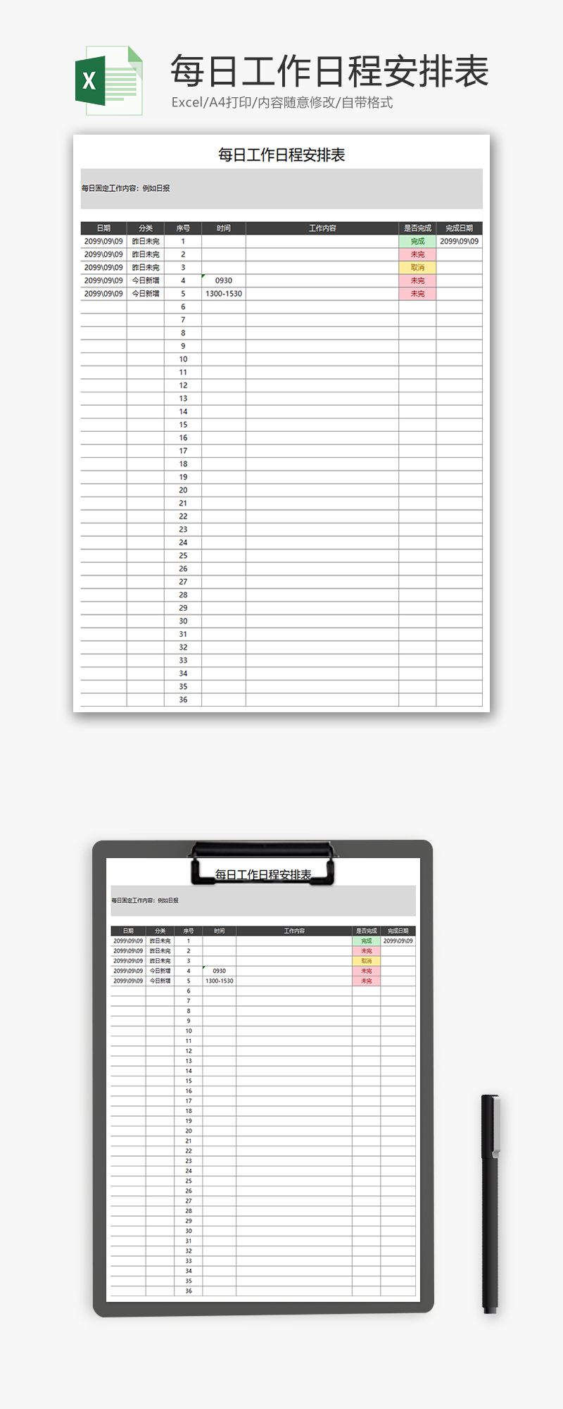 当前位置: 优页Excel  >  Excel表格  >  日常办公  >  每日工作日程安排表Excel模板