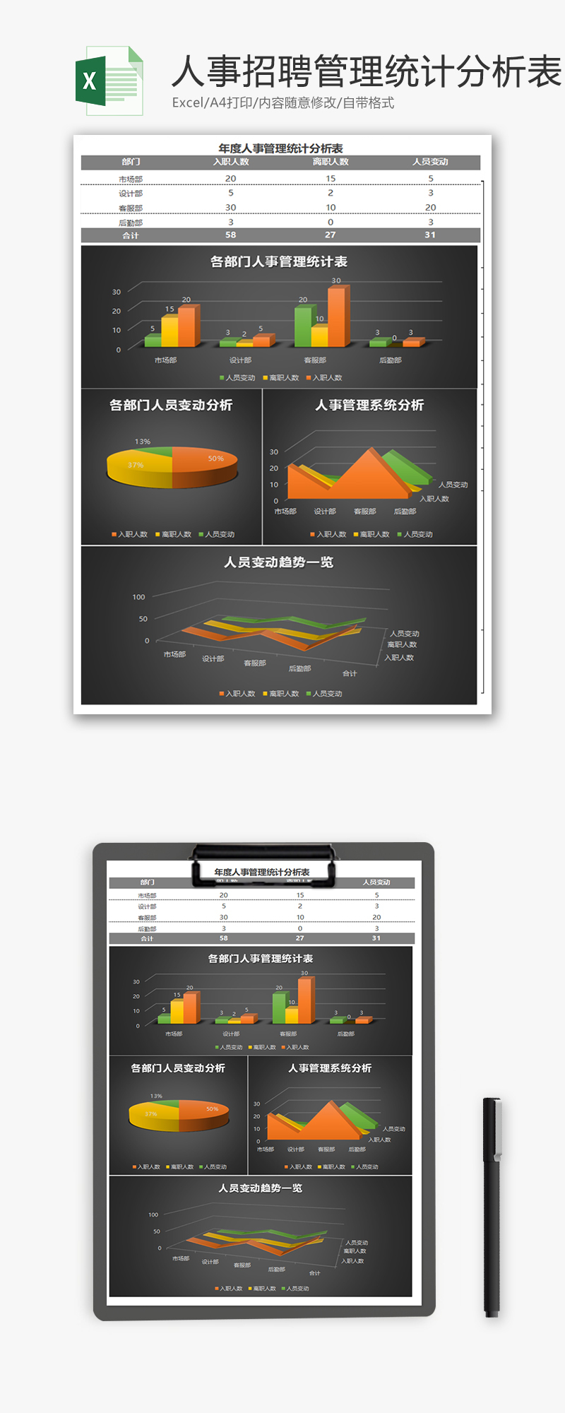 当前位置: 优页Excel  >  Excel表格  >  人事行政  >  人事招聘管理统计分析Excel模板