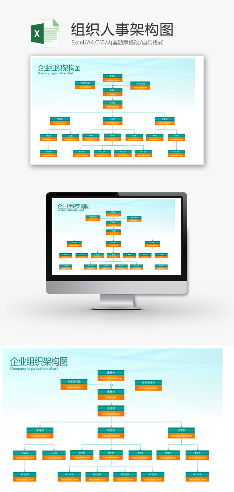当前位置: 优页Excel  >  Excel表格  >  人事行政  >  行政管理组织人事架构Excel模板