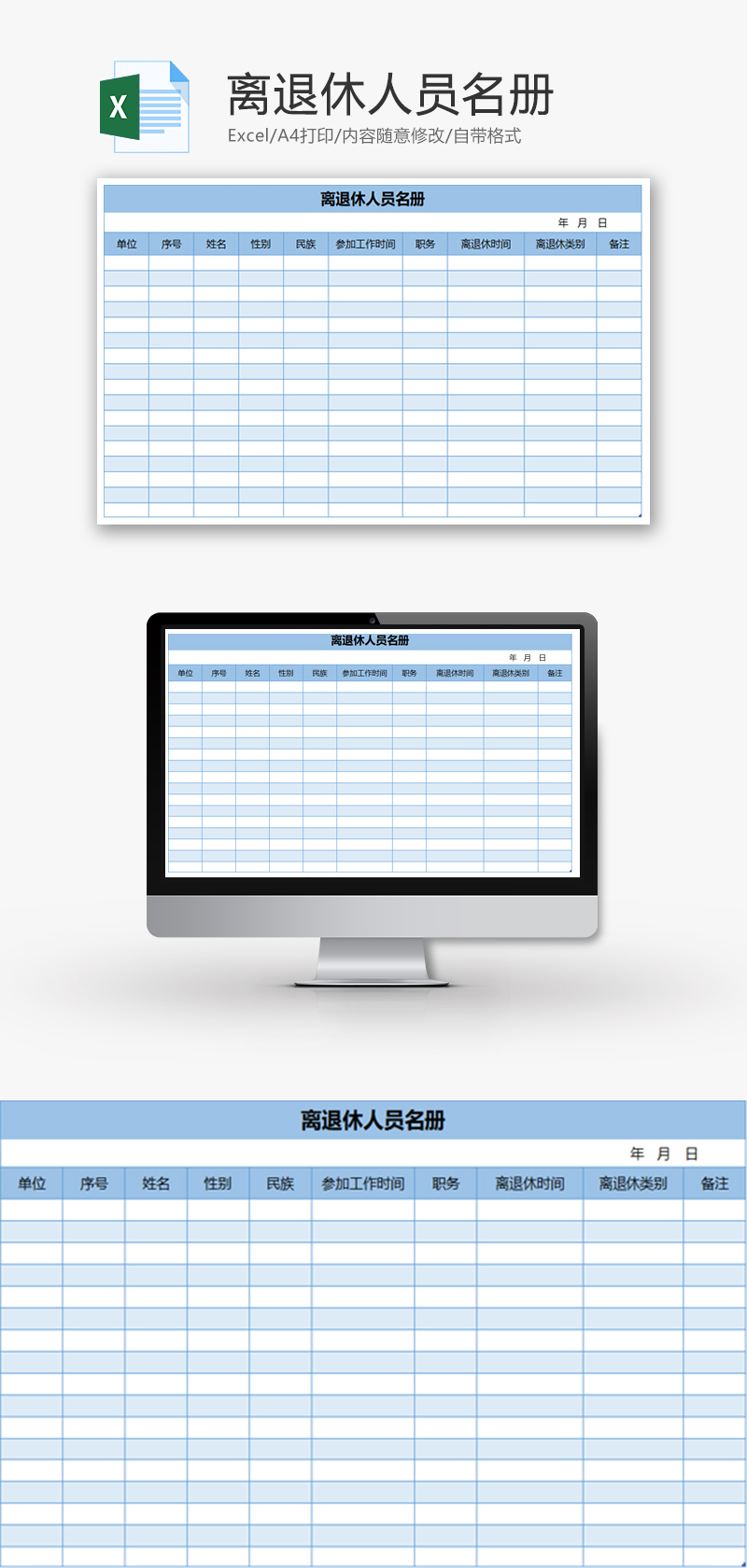 当前位置: 优页Excel  >  Excel表格  >  党政党建  >  离退休人员信息登记名册Excel模板