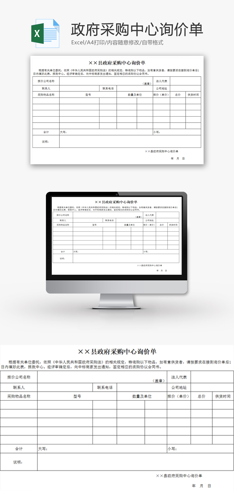 当前位置: 优页Excel  >  Excel表格  >  党政党建  >  政府采购中心询价表Excel模版