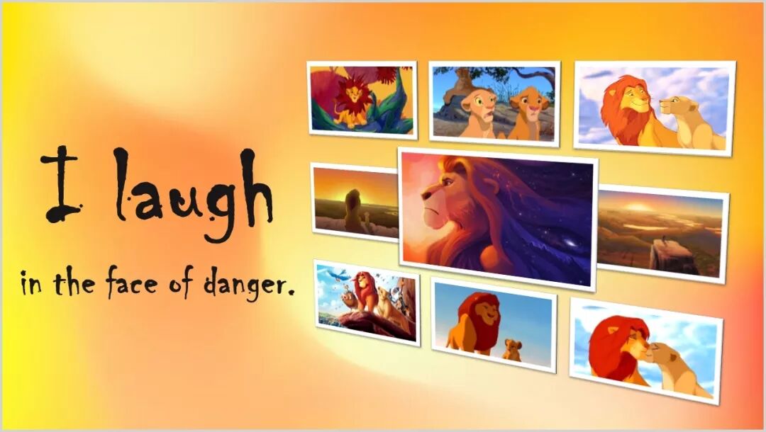5、选择合适的背景,添加文字,一张狮子王图片展就做好了。