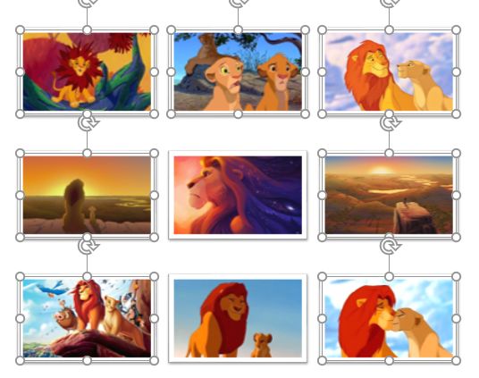 2、选中全部图片(除了中心那一张),然后组合,方便后面编辑修改,如果你想要着重表现其他图片,操作同上。