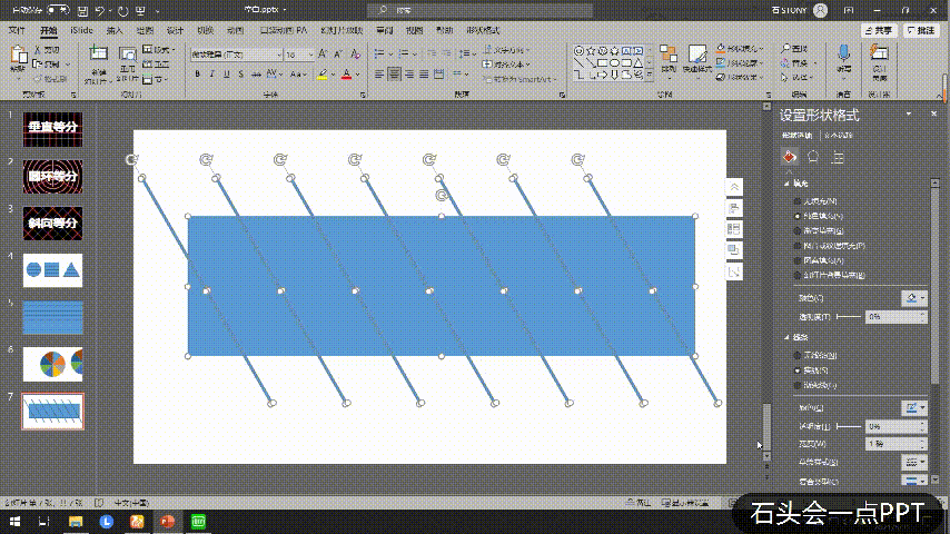 首先就是关于形状的等分,有些时候我们需要把一些形状等分成几份,虽然只要使用【合并形状】就可以了,但是每个等分的距离还是比较难掌握,这时就可以这么做: