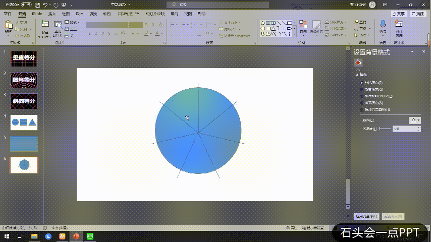 不过用这个方法等分之后的圆形不能拼回一个完美的圆,毕竟是和星形【合并形状】的,怎么都会有些角度的,