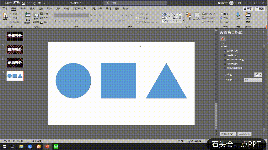 选中【对齐所选对象】时,就可以【形状等分】,选中【对齐幻灯片】就可以【页面等分】,下面就结合实际的日常运用来介绍一下。