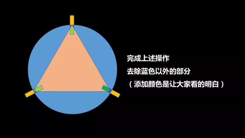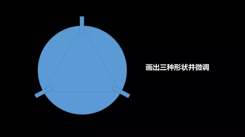 3、最后插入矩形(为了保证圆形轮廓上三个口宽度相等,建议另外2个矩形复制使用即可。问题来了,其他两个矩形怎么调整角度?——通过旋转即可完成)。如下图