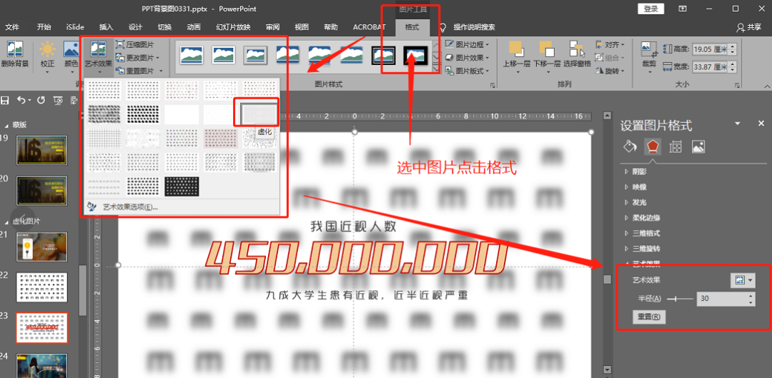 ③选中图片,设置图片格式中的艺术效果,即可得到纹理背景