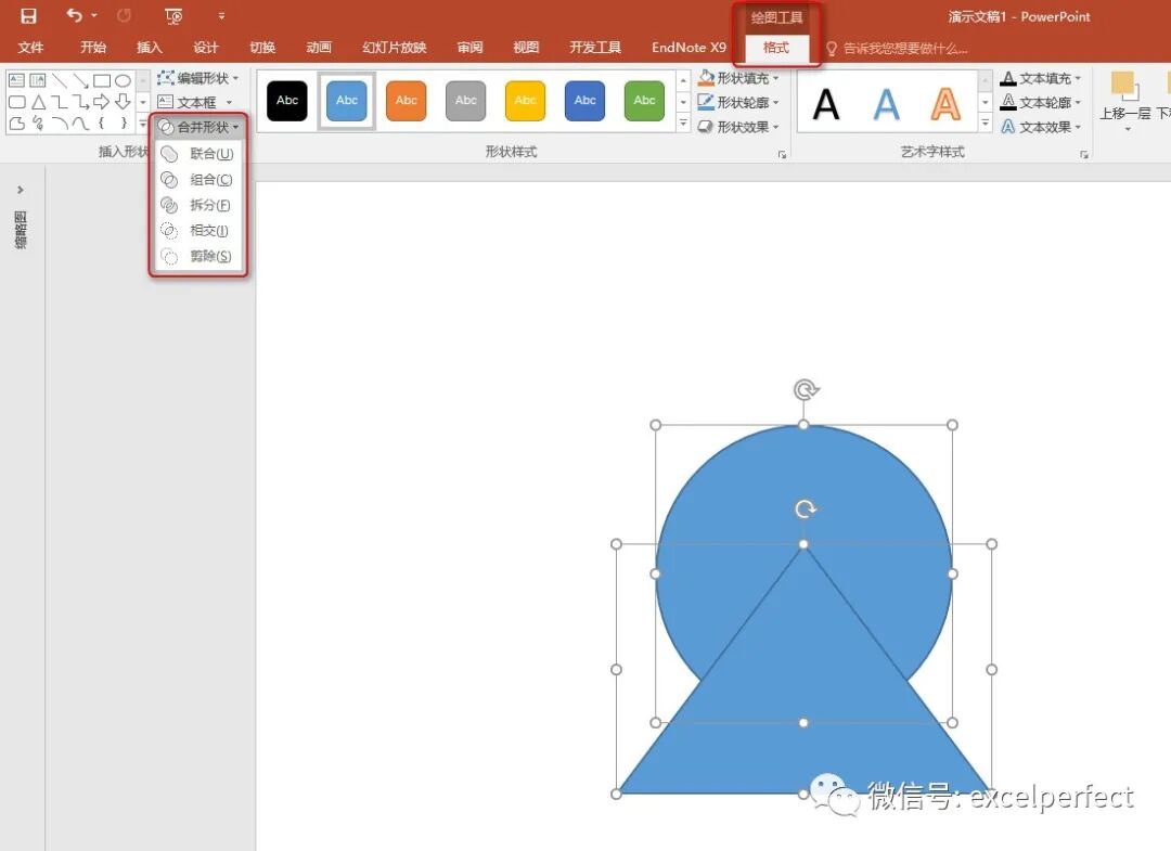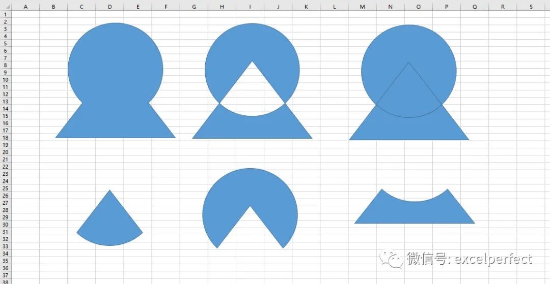如果需要在Excel中创建一个由其他多个形状组合而成的形状,那么可以在PowerPoint中创建,充分利用PowerPoint的“合并形状”功能。