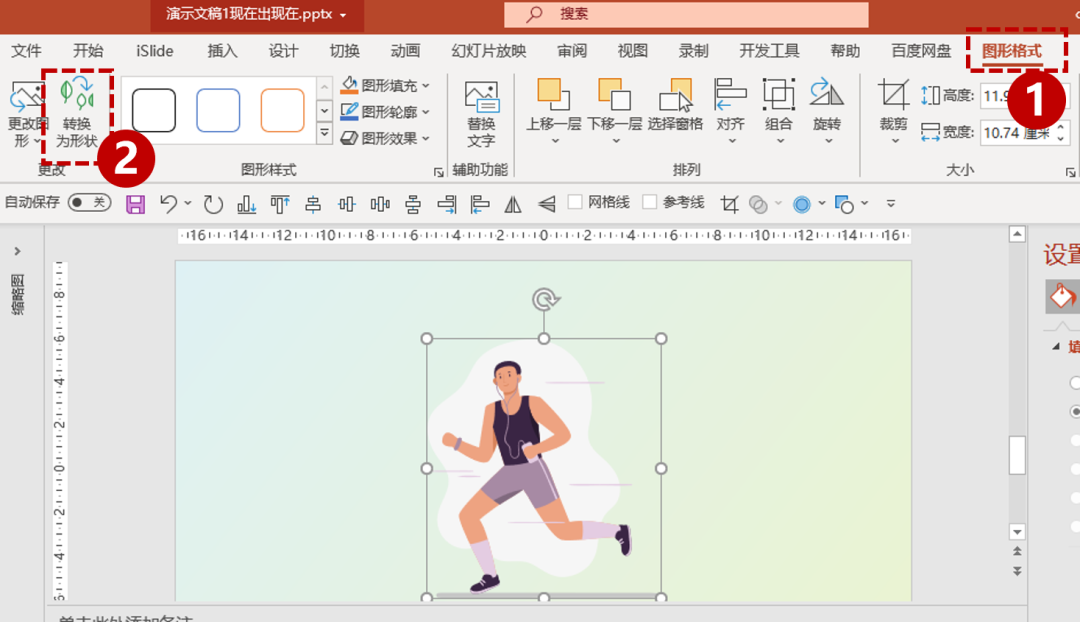方法2:选中新插入的矢量图片,然后选择顶部的“图形格式”菜单栏,在其左侧位置找到“转换为形状”按钮,点击即可。