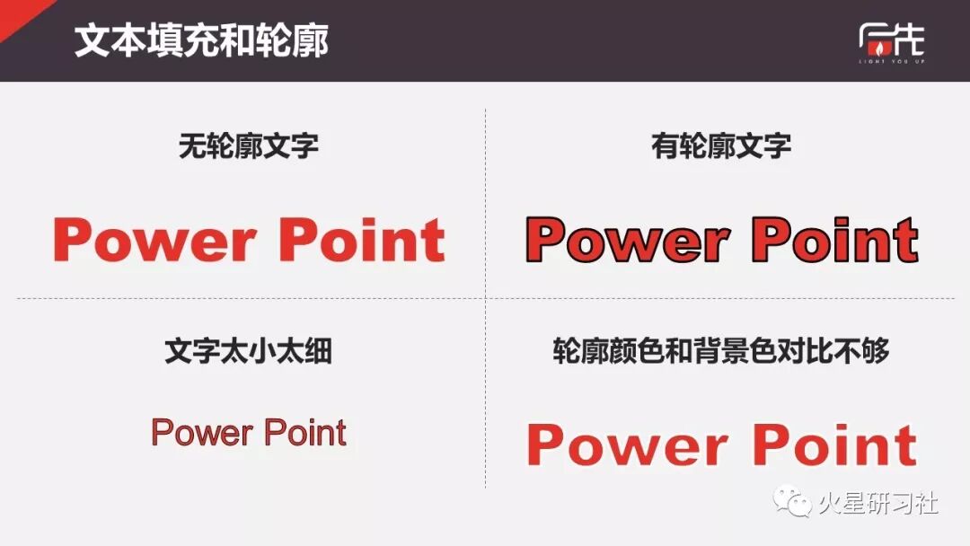 !如果文字太小、字体太细,填充色和轮廓色会很难区分。所以我们一般都会建议把字放大,字体选择微软雅黑(中文)并加粗,英文字体可以考虑Arial Black。
