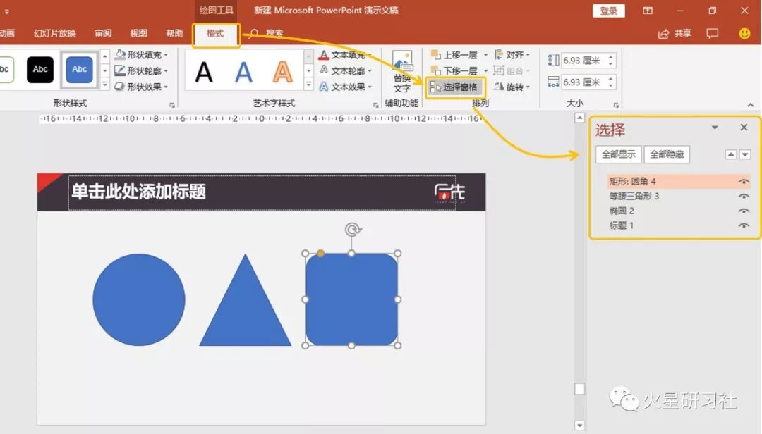 其次,形状的编辑大部分都在“格式”里能找到。当然在开始→绘图这里也能看到很多,以及右键也可以。但是我还是推荐大家多看看格式,这里最全;