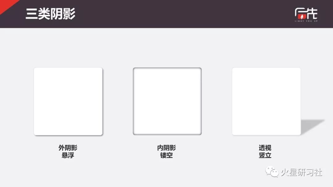 阴影分为三类:外阴影、内阴影、透视。