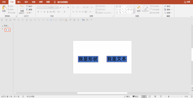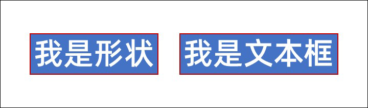 我们同时给他们设置相同的填充色(蓝)、描边色(红)、字体色(白),基本分辨不出哪个是形状,哪个是文本框。