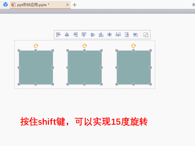 如果你按住Shift键,然后用鼠标拖动旋转按钮,就可以精确地旋转15度的N倍啦。