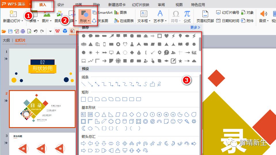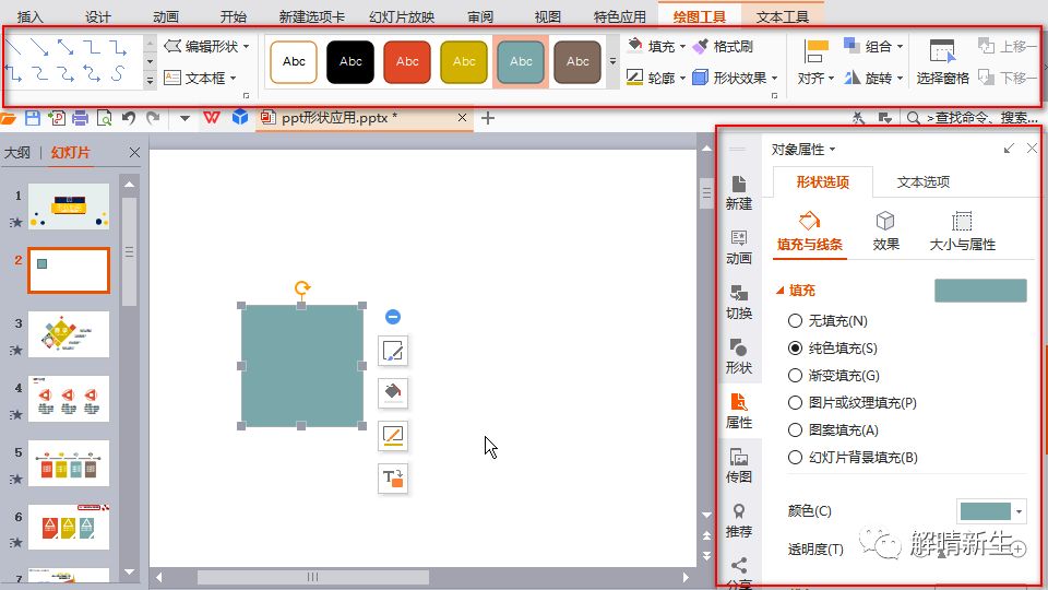 选中形状后,上方会多出几个菜单,供你修改格式。