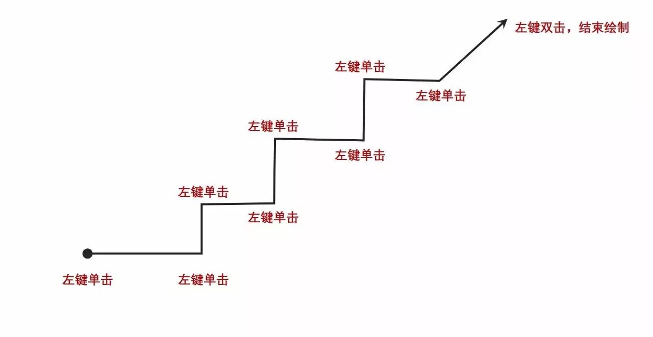 注意:绘制折线只需点击鼠标左键即可,不需要一致按住鼠标左键(持续按住左键绘制的是按照鼠标移动的路径绘制的自由曲线)