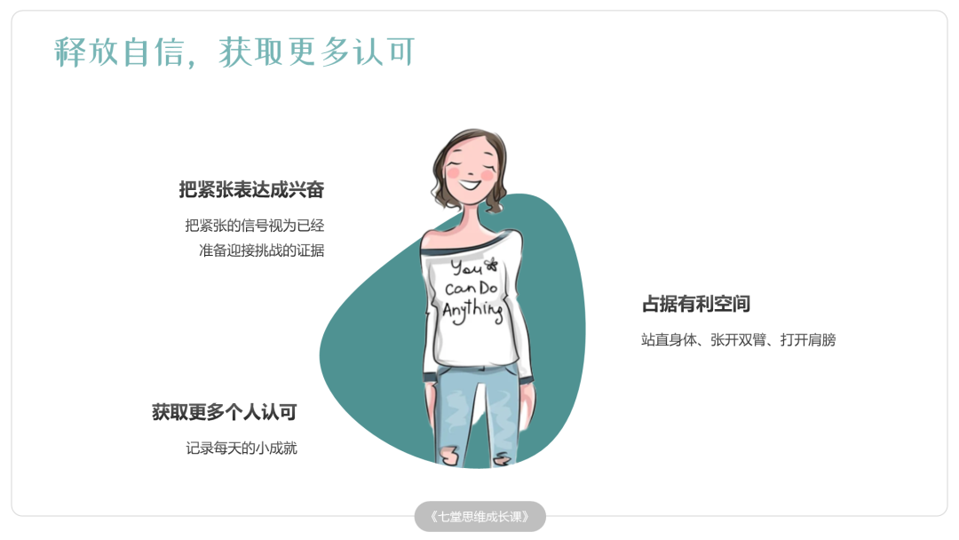 在制作《七堂思维成长课》一书的读书笔记PPT的时候,我就参考了这些创意形状,加上另外一项非常流行的创意设计:穿插效果,做成了下图的页面: