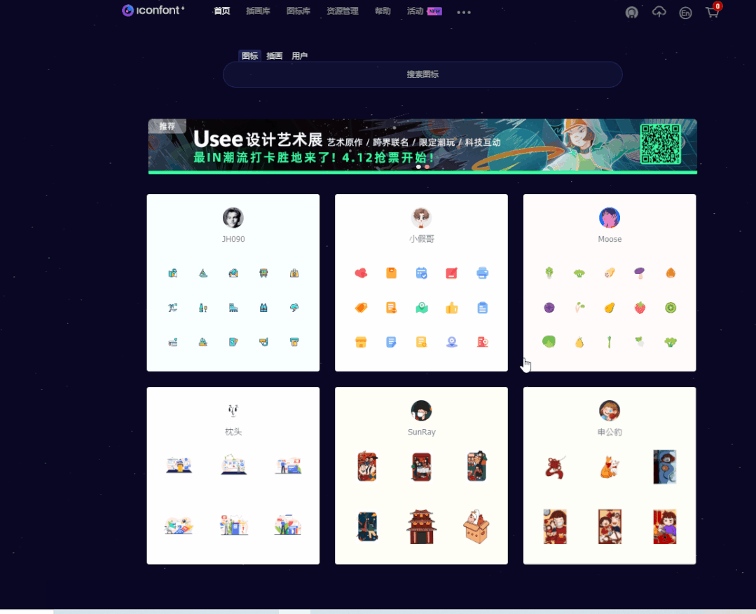 我们以阿里巴巴矢量图标库为例(https://www.iconfont.cn/,强烈推荐)