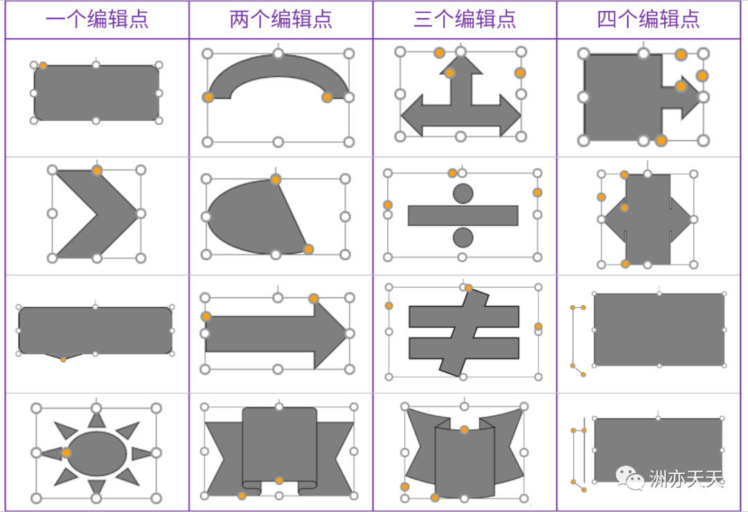 我们可以通过这个点对形状进行二次微调。有一个的、有两个的,甚至有三个和四个的。具体移动这些点,形状有什么变化,需要大家自己操作体会。