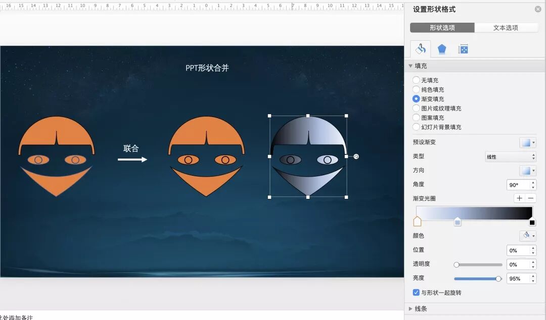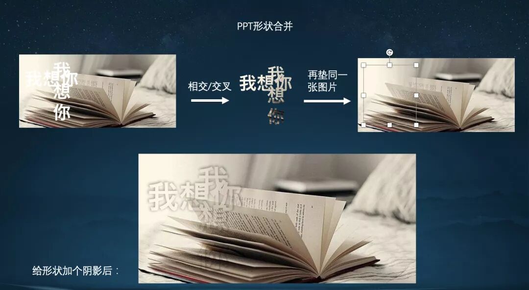 同样的,形状和图片、文字之间也可以进行合并操作: