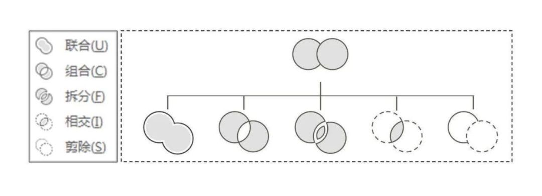 在有的版本中,这些操作被命名为联合、组合、拆分、相交、剪除,命名虽然不同,含义是一样的。