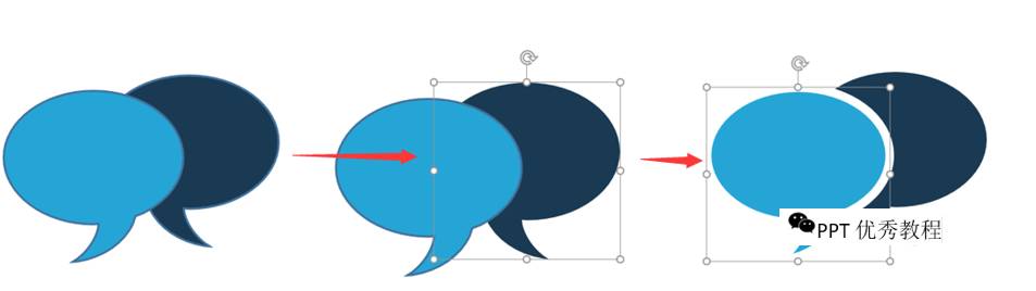 (2)按住Shift键的同时依次单击圆形状将其选择。再执行“格式”-“合并形状”-“剪除”命令,得到月亮形状,如图所示。将月亮形状放置于圆形上方,使其重叠,再执行“格式”-“合并形状”-“联合”命令,得到如图所示的图形。