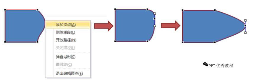 提示:也可以直接在形状上单击鼠标右键,在弹出的快捷菜单中选择“编辑顶点”命令。