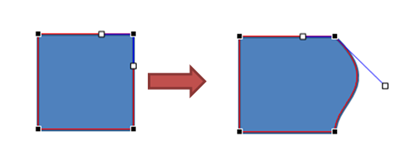 (1)拖动顶点:选择顶点后,在其两侧会出现两个控制手柄,通过调整控制手柄的长度和方向即可调节相交于项点的两个边的曲线及曲线半径,如图所示。