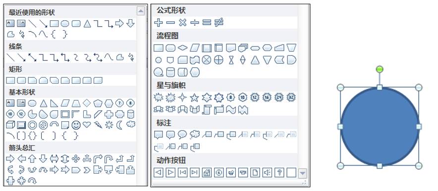 如果想要绘制一个圆形,只需要在“插入”/“插图”组中选择“形状”下的“圆形”工具,然后在PPT中单击鼠标或拖动一下鼠标即可。