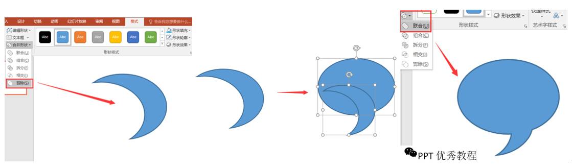 注意:在合并形状时,选择对象的先后顺序会导致合并形状的结果有所不同:先选择的形状为“主控形状”,后选择的为“从控形状”。