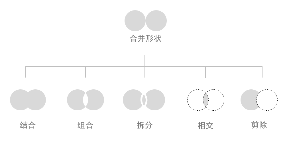 合并形状分为五大功能:结合,组合,拆分,相交,剪除