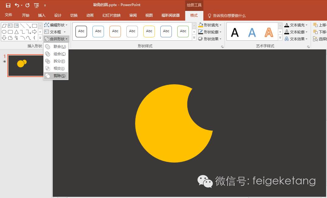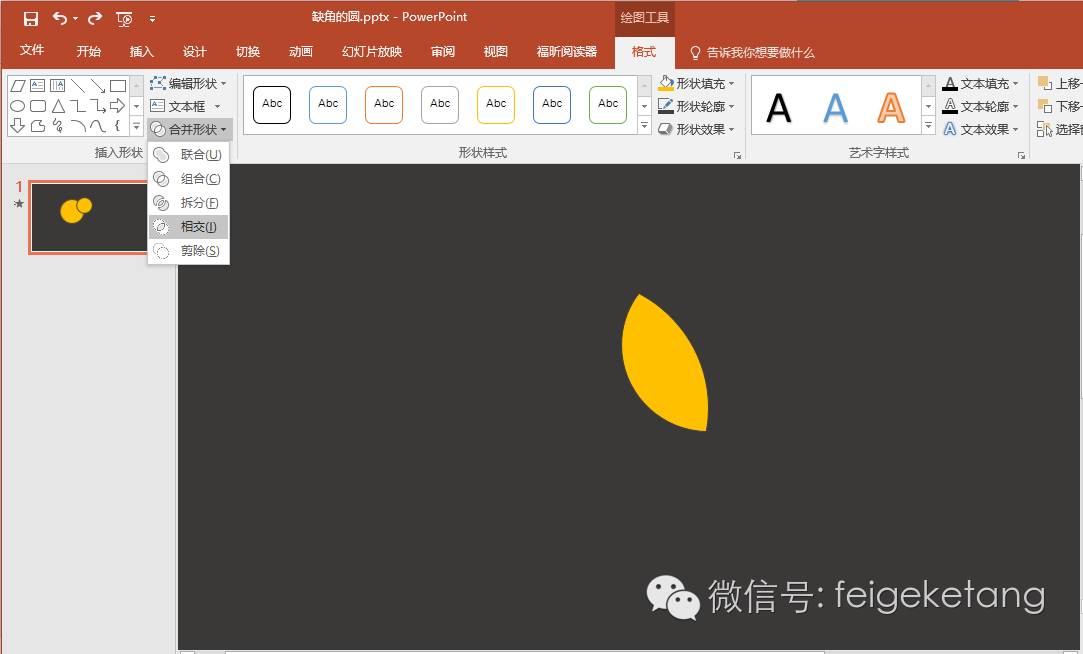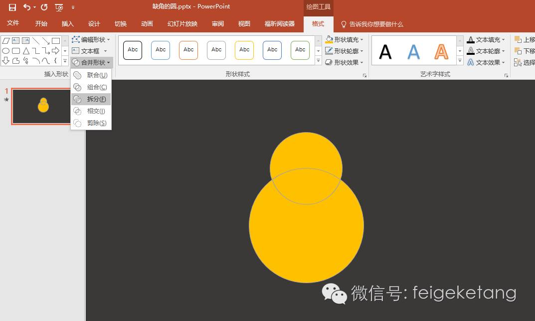 把要一个形状进行拆分,或者说把几个形状进行组合后再拆分,是形状格式菜单的“合并形状”功能。此功能又分为五个子功能:联合、组合、拆分、相交、剪除。这五的功能的操作方法都很简单。
