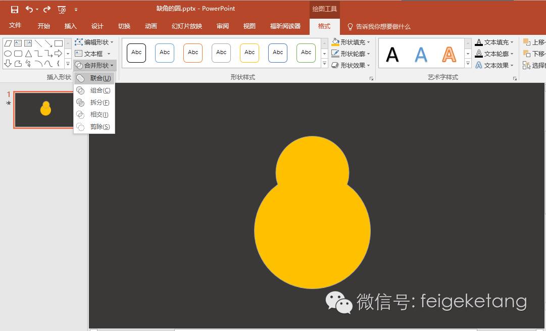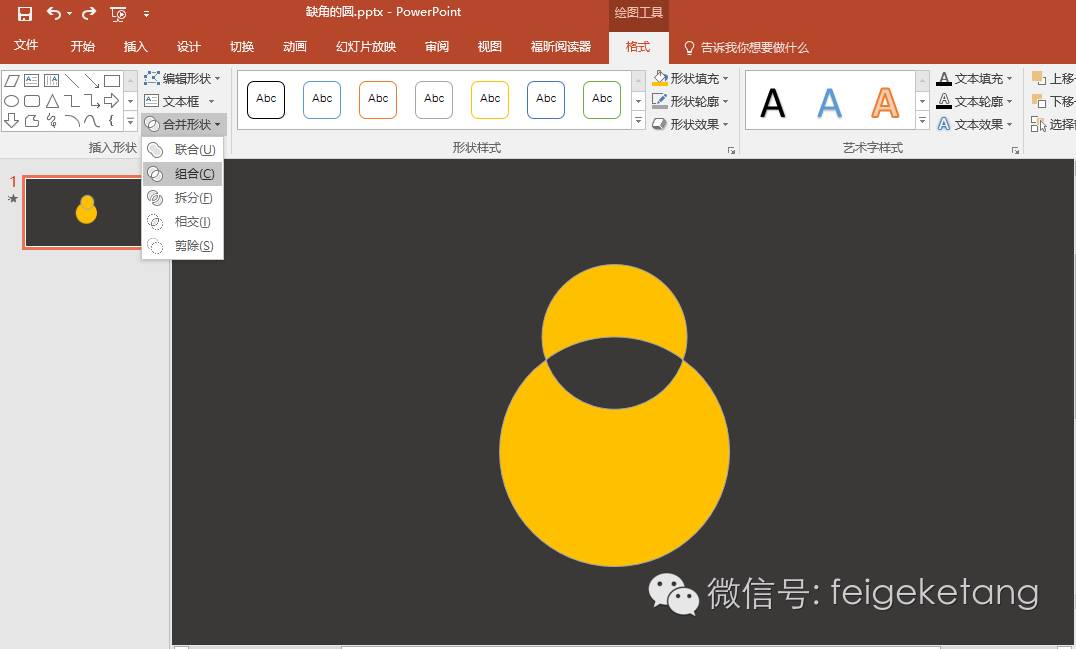 第二步:依次选择-[格式]-[合并形状],再选择需要的合并方式即可。