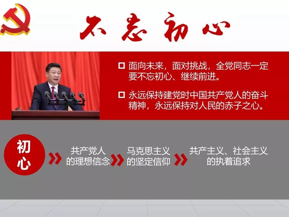 初心是理想信念,是坚定信仰,是执着追求。上面两点是我们不忘初心的做法。