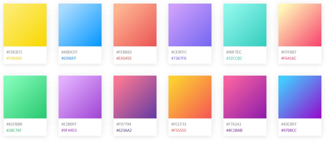 这个网站好的地方是:直接整理出了目前主流的设计中最常见,最好看的渐变背景,调好色彩,并以图片的形式放置在了自己的网站首页。