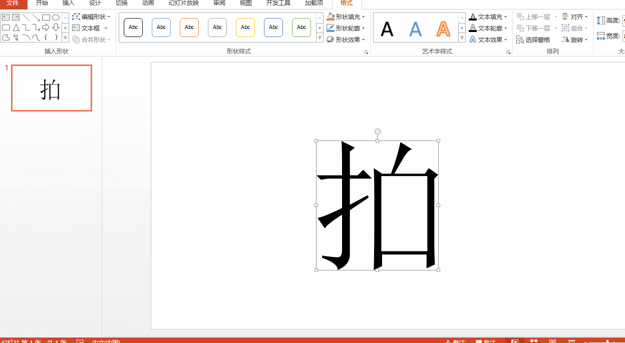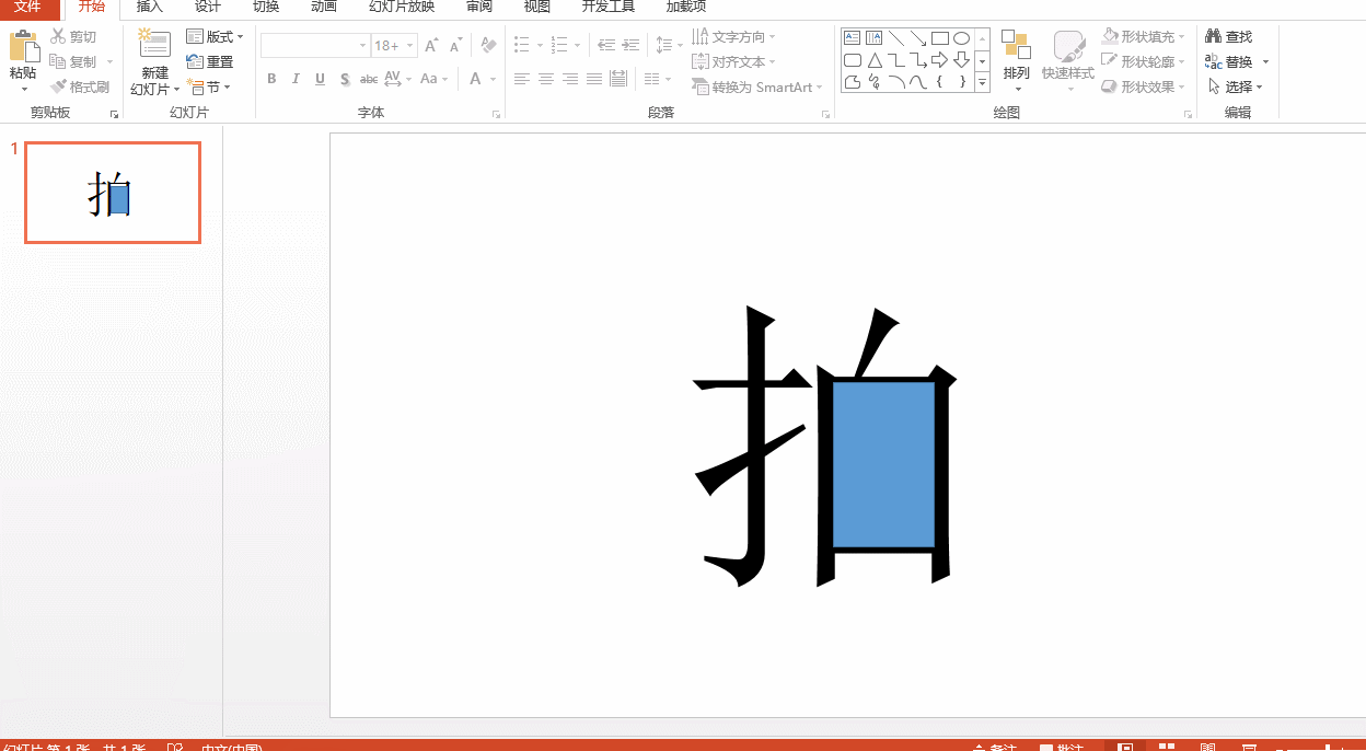 2、【插入】形状,绘制一个矩形,覆盖拍字的右半部分,这样“拍”字中间的小横线就被遮挡住啦~