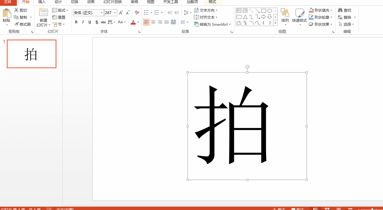 3、选中“拍”字和【插入】的矩形,点击【绘图工具】—【格式】选项卡---【合并形状】---【剪除】。