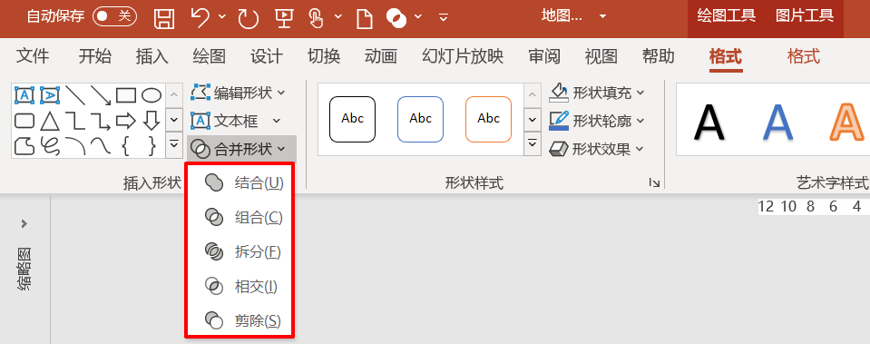 从Office 2013开始增加了拆分功能,图形与图形之间,图形与文字之间,文字与文字之间,都可以进行布尔运算。