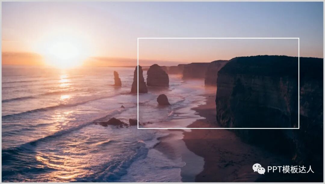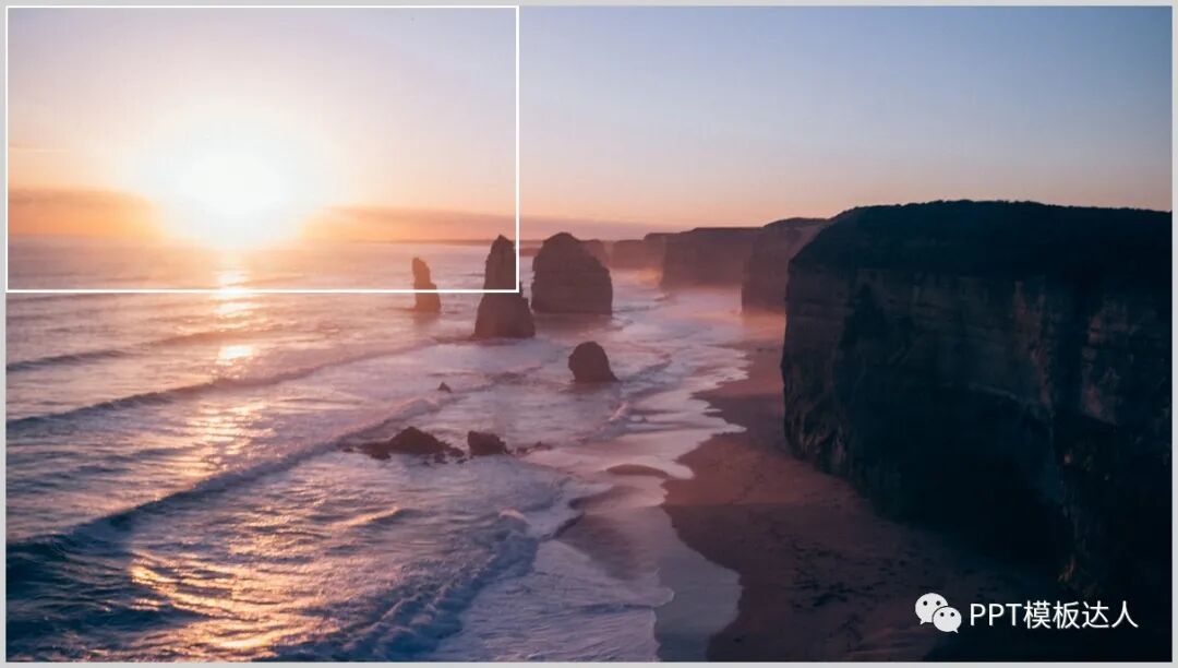 与前面的对称剪裁处理类似,但不是为了拼接,而是选择其中一块作为背景,一张图可以变为多张图,一张图片就可以做一份PPT。