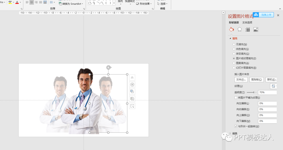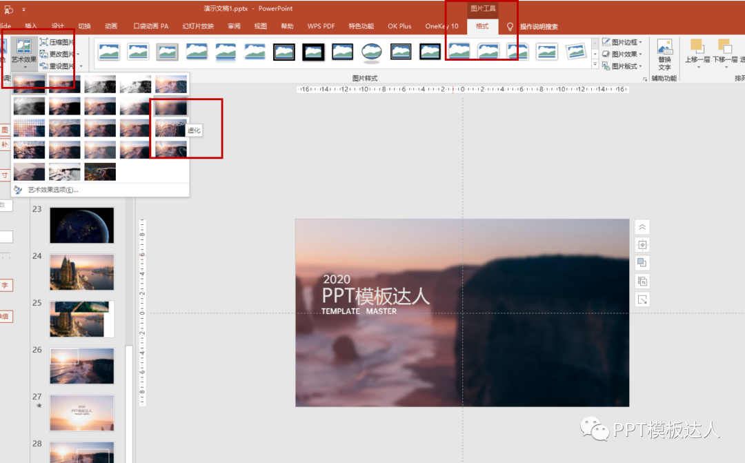 ③选中图片,设置图片格式中的艺术效果,即可得到纹理背景