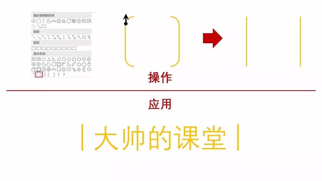 下面来跟着大帅玩一些新的形状(左侧提供了所介绍形状在插入形状功能区的位置,以免大家找不到)