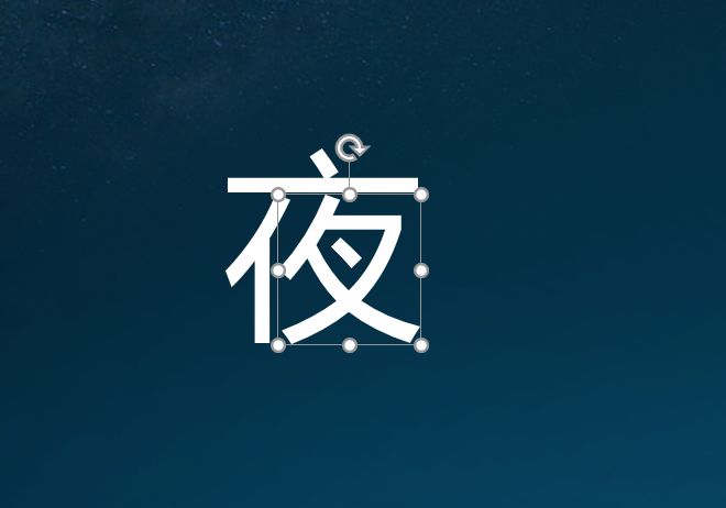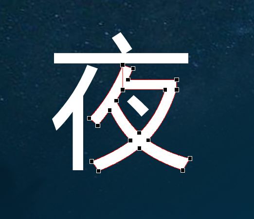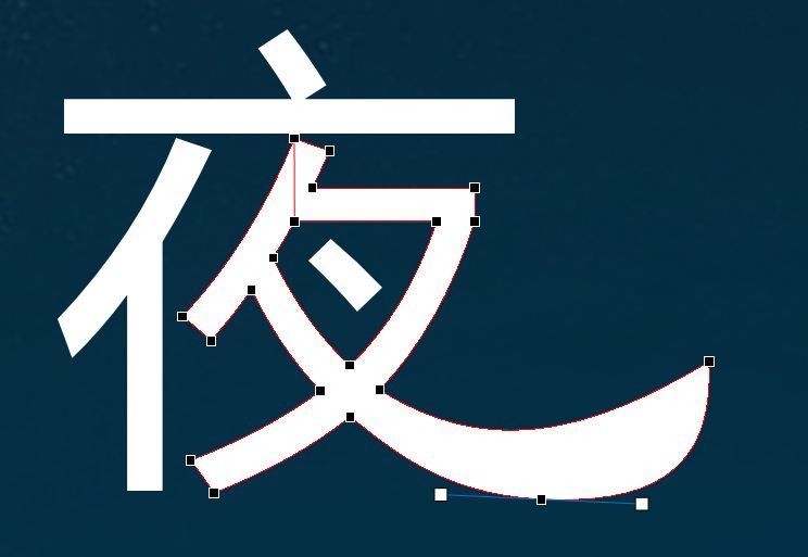 大家多尝试一下上面讲解的几种操作,熟练之后我们就可以按照自己的需要改变形状了,比如这里我们可以把本课开头原本黑体“夜”字,画出一个弯曲的尾巴。