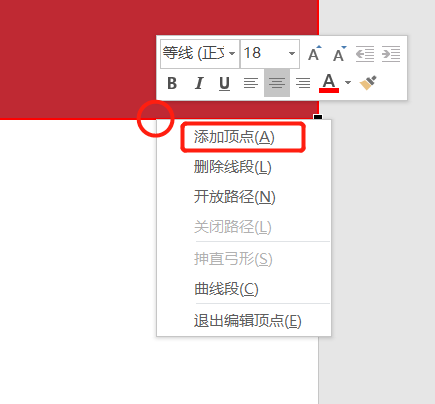 我们右击要插入顶点的位置,在快捷菜单中选择【添加顶点】。