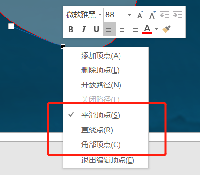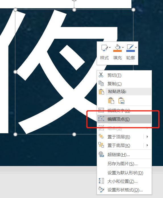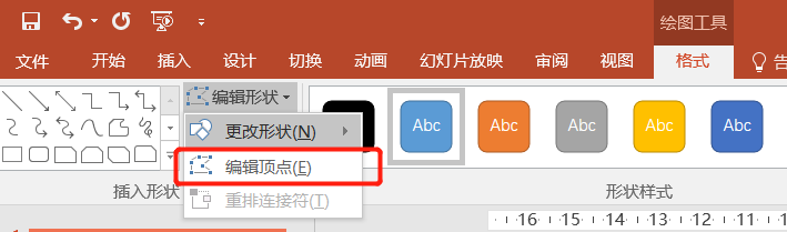 当然,一般快捷的方式是,我们直接右键形状,在快捷菜单里,也可以找到编辑顶点选项,效果一致。这里推荐使用后者,比较快捷。