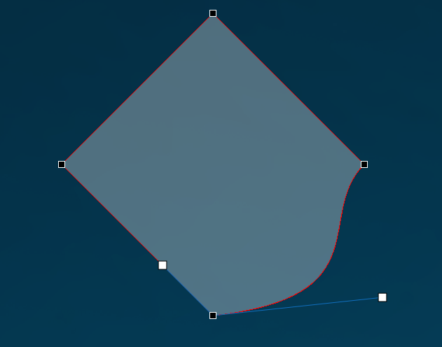最主要的编辑手段是:通过拖动顶点(黑色小方块)改变形状点的位置;通过拖动对应顶点的控制手柄(白色小方块),改变顶点两端线条的曲折程度。