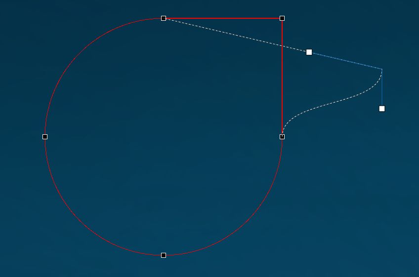 我们看到,顶点两侧出现了线和白色的方块点。我们将它们称之为“控制手柄”。