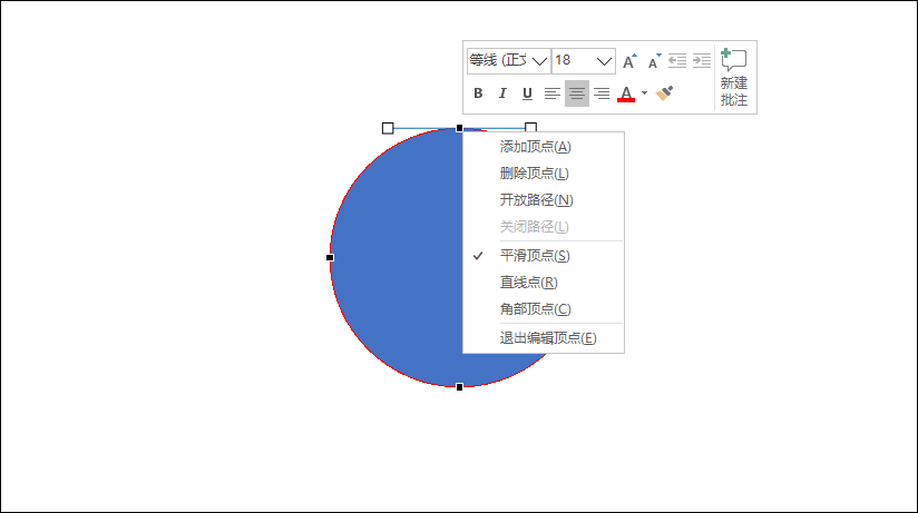 点击【编辑顶点】,此时形状会出现黑色的小方块,这些黑色小方块就是形状的顶点。