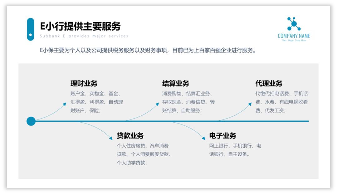 有时还能遇到这种多个不同主题的内容,通常情况下使用灰色形状处理最为恰当。