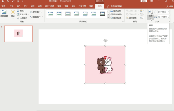 2.按住Ctrl键,依次选中幻灯片中的图片和形状,点击【格式】-【合并形状】-【相交】即可。